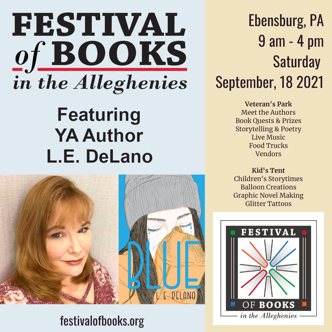 If you’re anywhere near Central Pennsylvania this weekend, don’t miss the Festival Of Books In The Alleghenies. This year’s festival will be held in Ebensburg, PA, and features dozens of authors – including yours truly. I’ll be on the mainstage at 10:45am reading an excerpt from BLUE. And don’t forget to stop by my table at tent #5 afterward and enter to win an advanced copy of BLUE.